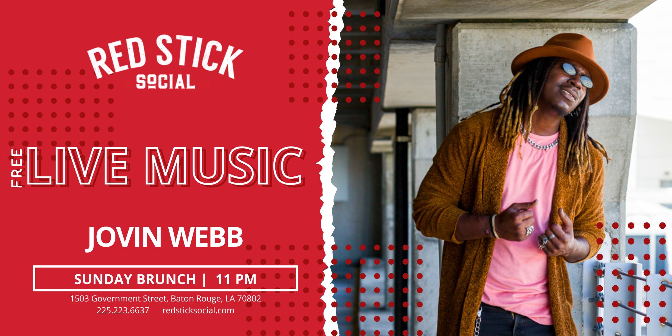 Welcome to Live Music @ Laid Back Brunch! Join us for a relaxing Sunday filled with delicious food, refreshing drinks, and fantastic live music at Red Stick Social.